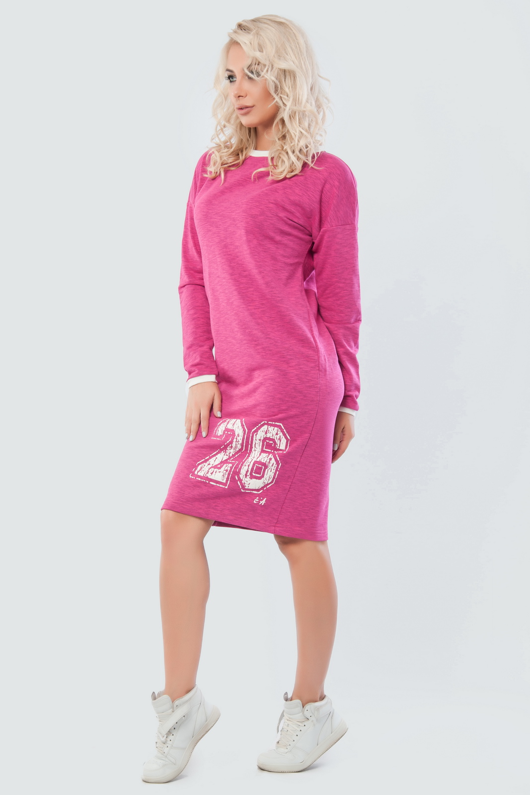 Спортивные платья бьют все рекорды по популярности. Модель в свободном крое насыщенного малинового цвета обязательно приглянется современным девушкам. В ярком платье получится выглядеть непревзойденно, стильно, женственно. Легкая приталенность, вместе с ровной юбкой, бережно очертят женский силуэт. Ткань на натуральной хлопковой основе с добавлением синтетики для прочности. Материал не «парит», обеспечивает поддержание приемлемой температуры под одеждой. Рукава длинные с белыми манжетами. Горловина небольшая, овальной формы, с белым кантом. Длина до колена, на юбке декор, представленный принтом цифр.
